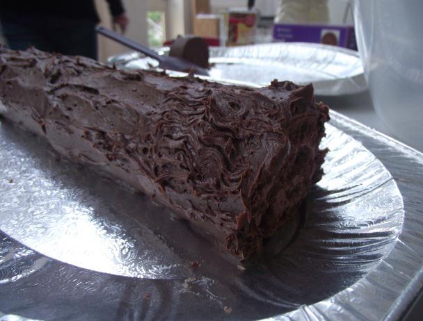 · To make the bark-like texture, we tried out different methods, e.g. with a fork and with the knife as we spread the butter icing.